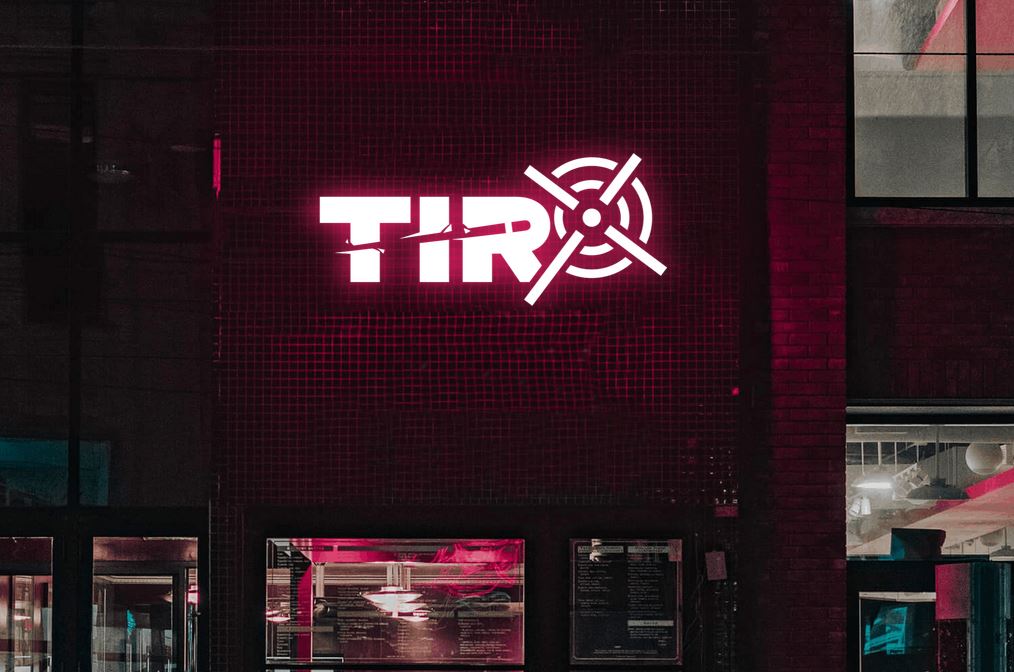 Линия сквозь буквы создаёт эффект выстрела, динамики и попадания. Логотип не статичен, а «живой».